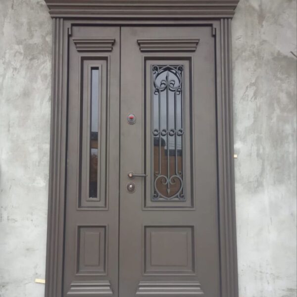 باب دبل صاج ديكور مجنو مع اكسسورات صب الومنيوم