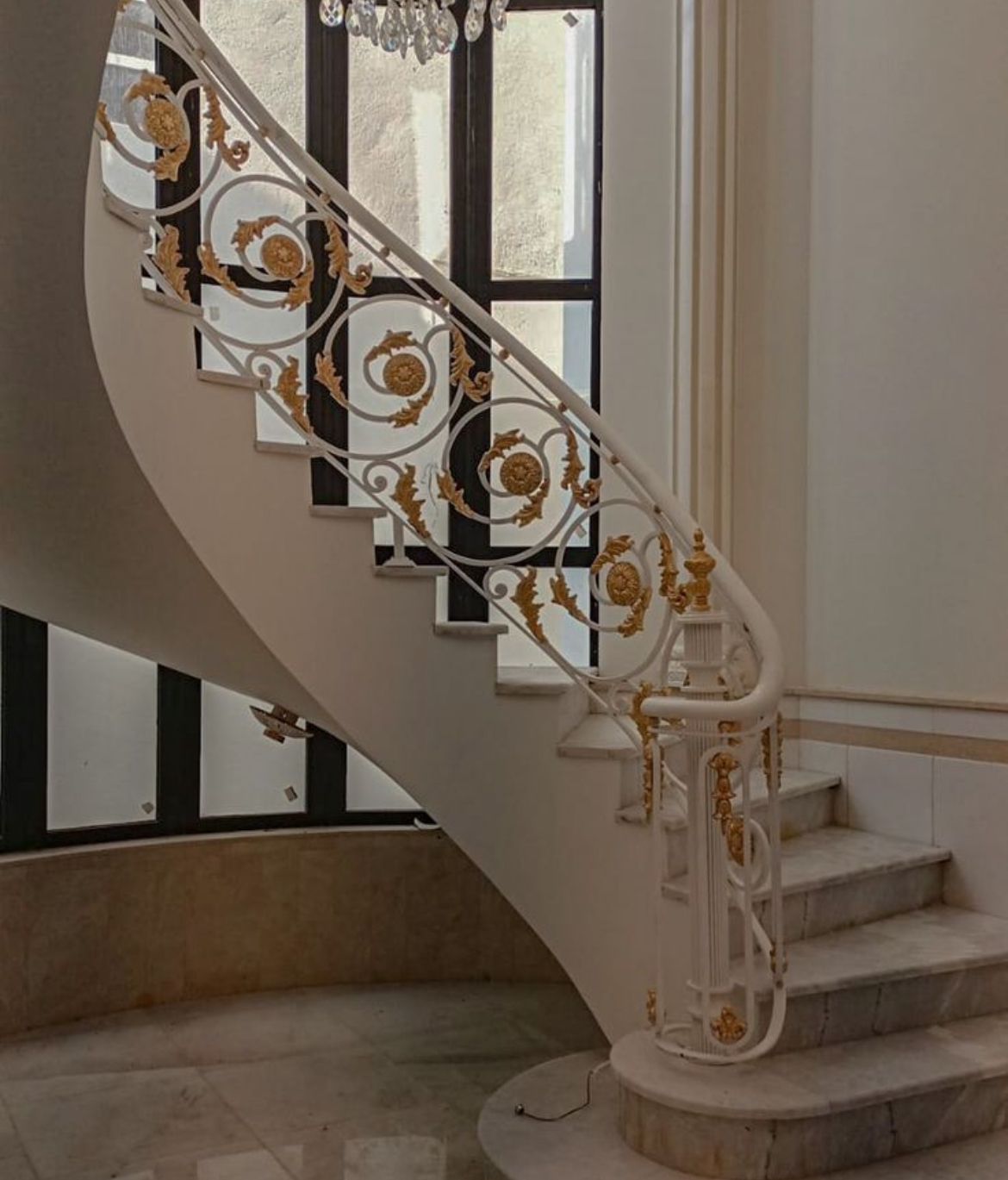 درابزين حديد مشغول مربع مليان 16 مم مع اكسسورات صب الومنيوم وكوبستة حديد