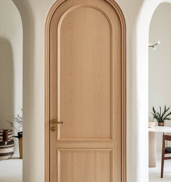 باب خشبي بتصميم كلاسيكي مع قوس من الاعلى مع قشرة سنديان