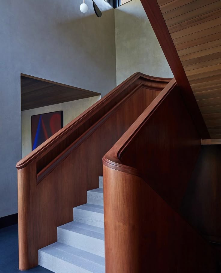 دربزين بأعمده خشبيه مخروطة من الخشب الماجنو